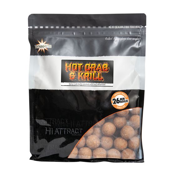 Gamme BIG FISH HOT CRAB & KRILL : • Bouillette de haute qualité à base de farine de poisson, contenant de la farine de krill de l’Antarctique • Flocons et poudre au piment pour un goût épicé • Arôme de crabe emblématique combiné à des huiles de poisson • Texture ferme, mais excellente dispersion des attractants