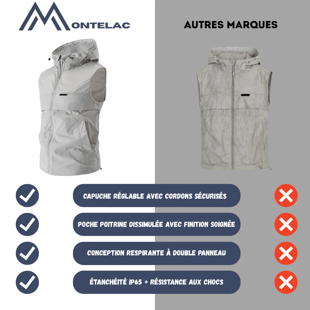 Ce gilet sans manches pour homme est conçu pour les activités estivales en plein air. Fabriqué en nylon léger et tissé, il offre une protection pratique contre le soleil tout en permettant une bonne circulation de l’air. Sa coupe droite, sa capuche intégrée et ses poches fonctionnelles en font un vêtement adapté aux randonnées légères, aux balades ou aux déplacements urbains. Ce modèle signé Montelac s’intègre facilement à une tenue outdoor polyvalente pour la saison chaude.