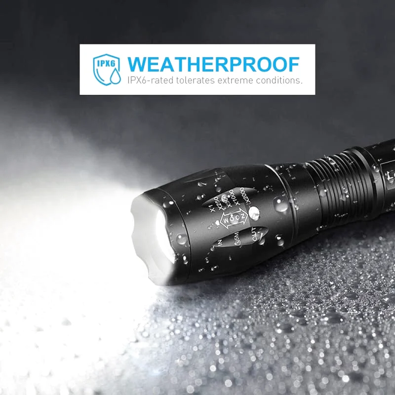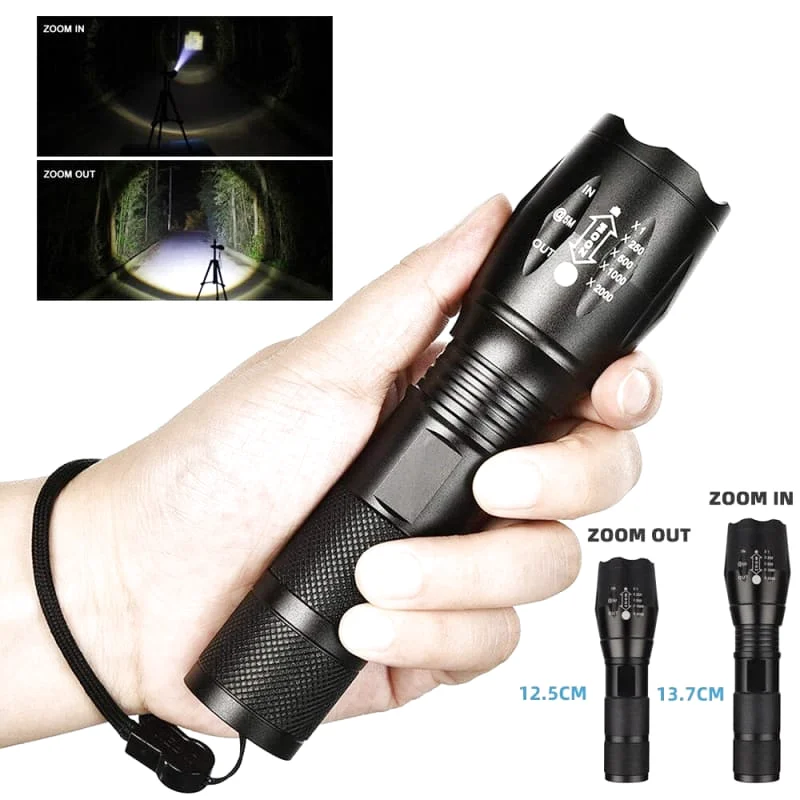 Notre lampe de poche est un outil polyvalent qui vous offre une grande puissance d’éclairage tout en étant compacte et facile à transporter. Son zoom réglable vous permet d’ajuster la portée de l’éclairage en fonction de vos besoins, tandis que sa fonction étanche vous garantit une utilisation sans souci même par temps pluvieux.