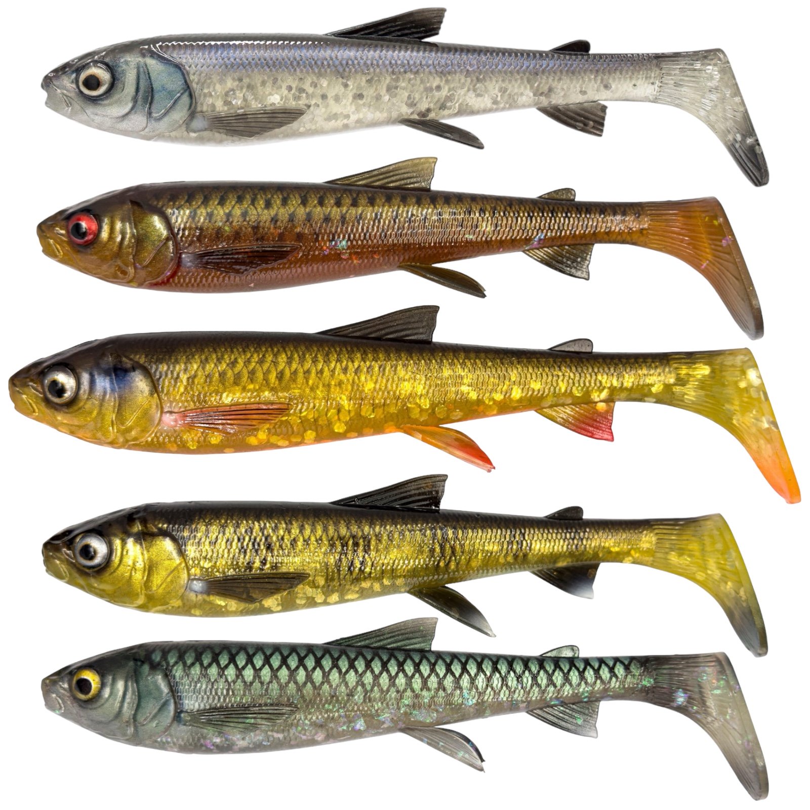 Basé sur le scan d’un vrai poisson blanc, le Leurre Souple 3D Whitefish Shad Savage Gear dispose d’une queue en forme de pagaie présentant des détails impeccables et une fantastique action de nage. La tête et le corps avant volumineux poussent beaucoup d’eau et confèrent au leurre une grande stabilité sur les zones peu profondes, idéale pour la pêche du silure. Les ailerons articulés et super réalistes ajoutent une grande action secondaire à la grande queue shad, qui contient également un rattle en verre bruyant pour une attraction supplémentaire. Fabriqué à partir d’un matériau PVC super doux avec des couleurs époustouflantes et un parfum déclencheur.