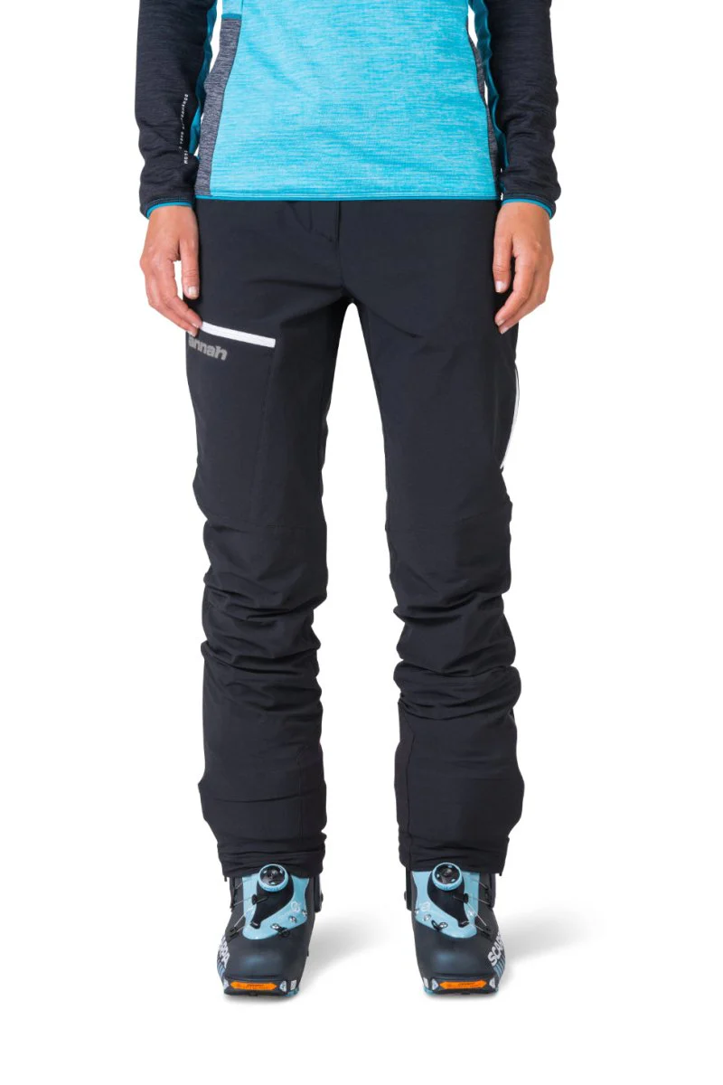 Ce pantalon softshell multifonctionnel pour femme, Hannah Juke Pants, est fabriqué en AFT Double Weave Thermo déperlant, résistant au vent, respirant et extensible, associé à un traitement DWR. Il convient donc à diverses activités aérobiques hivernales, du ski de randonnée à la randonnée pédestre, mais il est également parfait pour le ski de printemps. La conception éprouvée comprend un dos surélevé et des genoux préformés. La taille peut être ajustée à l’aide d’une ceinture. Sur les cuisses, des fentes avec des fermetures éclair résistantes à l’eau assurent une ventilation suffisante. Les fentes zippées au bas des jambes sont très pratiques, tout comme les guêtres à neige à l’intérieur des jambes. Grâce aux éléments réfléchissants, vous serez bien visible même par mauvais temps et la certification Bluesign garantit la qualité.